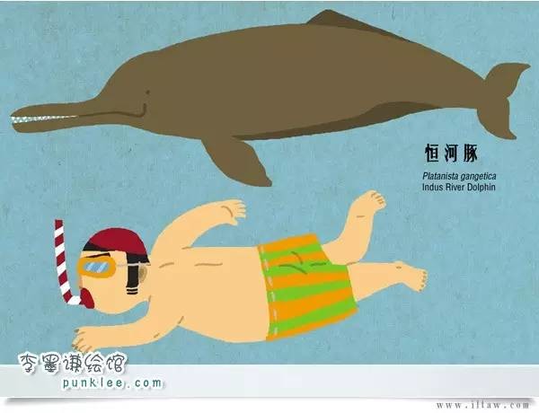 又称盲河豚,因为常年生活在富含淤泥的水中,它们的眼睛已经完全退化失明了。这一奇特生物主要分布于印度河、恒河、布拉马普特拉河及梅克纳河。过去它们被划分成两种,分别是恒河豚和印河豚,如今又被归为同一种生物。目前恒河豚的种群数量也如白暨豚一样不容乐观,其中恒河亚种所剩不到2000头,印河亚种可能只有965头。目前属于濒危物种。成年恒河豚雌性大于雄性,最长可达2.5米。出生时的幼体约0.7米-0.9米之间。