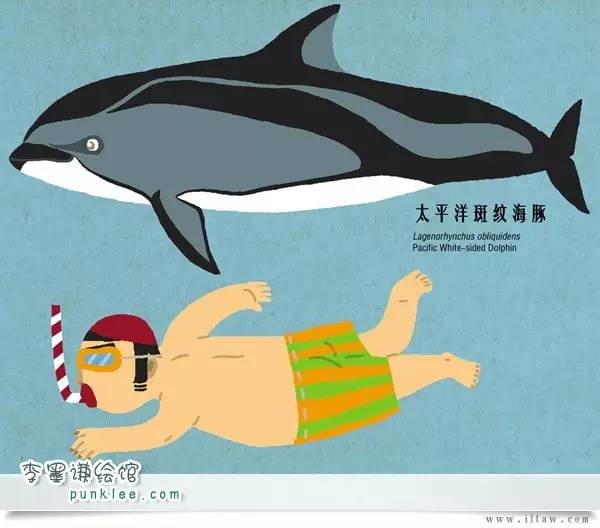 是在海上表现极其活跃的一种斑纹海豚,由于在快速游泳时能够制造出大片水雾而令人难忘。它们主要分布于北太平洋北部的温带深水海域,据统计数量可达90万-100万头左右,目前属于无危物种。成年太平洋斑纹海豚可长到2.1米-2.2米之间,出生时的幼体约0.8米-1.2米左右。