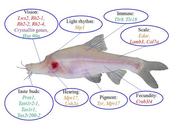 附图:洞穴种类——安水金线鲃一些重要的遗传变化