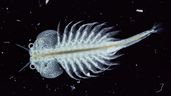 它们像天外来客一样,跟随飞船穿越大气划过长空,降落在地球这颗蓝色星球上。在飞船深处,整齐稳妥地安放着一排排熟睡的“宇航员”,它们每个都蜷缩在保护壳中,在这里它们或许已经存活了一万年。这群“宇航员”不是普通的太空旅行者,在着陆后的几周内,它们会破壳而出,发育成为五脏俱全的海洋怪物:卤虫。它们通体呈三文鱼式的粉色,长着三只眼睛,十一对扁平附肢不停地挥动。 这不是小说,是1972年发生的真实故事,飞船中沉睡的乘客就是卤虫。卤虫又被戏称为“海猴”,这次它们随“阿波罗16号”登月任务结束一同返回地球。科学家用飞船将卤虫带到太空,以检测宇宙辐射对它们产生的影响。这个实验对实验对象要求非常苛刻,实验品必须具备几乎坚不可摧的特质。能够胜任这次实验任务的可能非卤虫莫属。 雄性卤虫长有钩子,能紧紧抓住雌性。 哪怕被暴晒、火烤、浸入酒精、剥夺氧气、用紫外线照射、用105摄氏度水煮、或者冷却到近绝对零度,卤虫也绝不会一命呜呼。它们甚至能经受住溶解人类肉体的极端PH酸碱度,能在浓度为50%的盐水或杀虫剂中存活下来。在太空的真空中,或者海底6000米以下的高压环境下,它们还是能和小伙伴们一起愉快地玩耍。