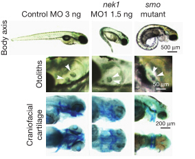 罗列人类细胞中和纤毛疾病相关的多个基因列表,对于患者非常有用,因为研究者有可能会找到引发纤毛疾病的遗传原因。而且随着研究的深入,研究者还发现了一些完全意想不到的细胞过程,这些细胞过程和纤毛疾病的发病直接相关。用NEK1和SPATA7在斑马鱼身上做实验来验证C21orf2突变,发现斑马鱼出现了轴索变形、脑积水、小眼睛、耳部缺陷以及软骨异常等现象。