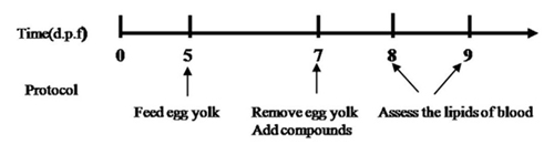 评价一个候选药物降血脂药效的实验周期不到10天,包括了斑马鱼繁殖、诱导建模和药物处理整个过程,如下图所示。
