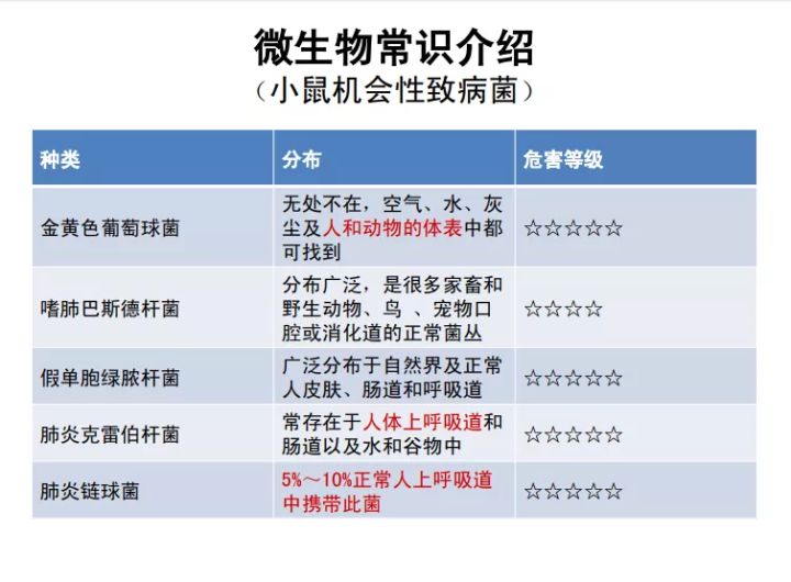 由于设施内饲养的小鼠为SPF(SPF-Specific Pathogen Free)级小鼠,SPF认证的种群必须检查是否存在特定病原。小鼠检测包含:沙门菌、支原体、鼠棒状杆菌、泰泽病原体、嗜肺巴斯德杆菌、肺炎克雷伯杆菌、金黄色葡萄球菌以及绿脓杆菌。