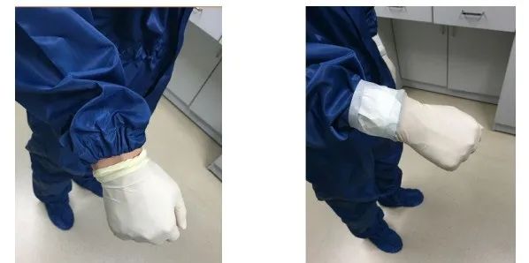 美国一项研究发现,无论男女,平均每只手上有150种细菌。手套的作用将我们的手与环境进行隔离,避免我们对于动物设施造成污染。手套的佩戴,需注意要将手套的边覆盖于净化服的袖口上,同时使用胶带进行固定,避免在操作过程中造成脱落。在设施内,我们将会操作不同的小鼠,为了避免交叉感染,我们的技术人员会佩戴双层手套,在操作不同笼/品系的同时,进行手套的更换。