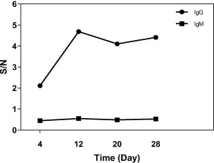 图2. COVID-19恢复期患者血清中的IgG和IgM水平。