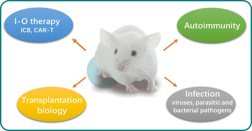 huHSC免疫重建小鼠除了在肿瘤免疫治疗领域大显身手外,也可直接用于研究人免疫细胞介导的包括皮肤、胰岛、心脏等在内人体组织移植排斥反应,及抑制免疫排斥的特异性疗法的评价。此外涉及多种免疫细胞类型自身免疫疾病及病毒、寄生虫和细菌引起的感染性疾病的机制探究及治疗方案的发掘,同样需要重建人免疫系统的huHSC小鼠的加持[9]。