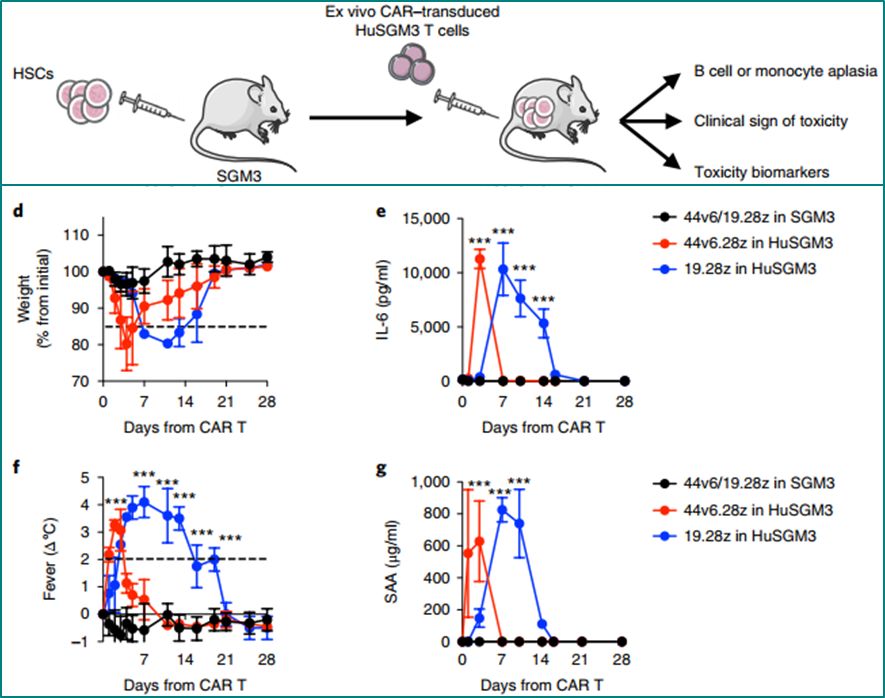 图3 huHSC-SGM3人源化小鼠模型重现CAR-T疗法临床并发症[8]