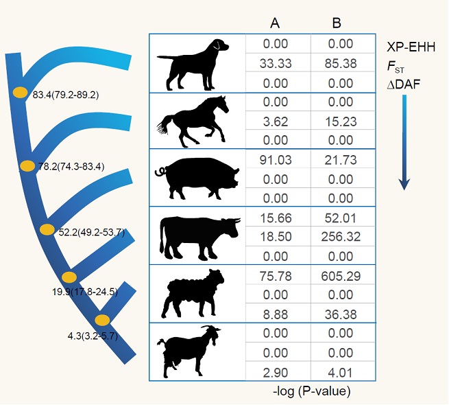 中国科学院昆明动物研究所张亚平、吴东东研究团队利用大规模基因组学数据,利用各种群体遗传学方法揭示了青藏高原家养动物(如藏獒、藏鸡、藏黄牛等)的高原适应性遗传机制(Mol Biol Evol 2014;Mol Biol Evol 2015; Nature Genetics 2016;Cell Res 2017;Nat Ecol Evol 2018),鉴定出一批以HIF缺氧诱导通路为代表的高原适应候选基因,揭示了基因交流在家养动物高原适应中的重要作用,为高原家养动物品种资源保护提供了重要信息。