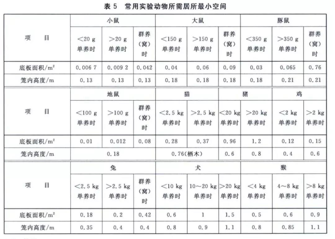 ▲GB 14925-2010对不同实验动物实验空间的约定在各种管理条例颁布后,国家质量监督检验检疫总局也出台了相应的国家标准。如2001年出台了GB14925-2001 《实验动物环境及设施》的国家标准,并于2010年对标准做了修订。GB14925对实验动物设施、笼舍结构、通风、照明和动物空间需求等做了明确规定,也成为设施建设和笼器具生产的参照标准。针对实验动物医护和微生物质量也制定了相应的国家标准,如GB 14922.2-2010 《实验动物微生物学等级及监测》中依据可携带微生物种类对实验动物进行了分类,分为普通级动物、清洁级动物、无特定病原体(SPF)动物和无菌动物,并约定了不同种类不同微生物等级动物所需排除的细菌和病毒种类及相应的检测方法。