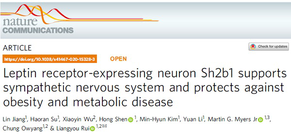 Jiang, L., Su, H., Wu, X. et al. Leptin receptor-expressing neuron Sh2b1 supports sympathetic nervous system and protects against obesity and metabolic disease. Nat Commun 11, 1517 (2020).