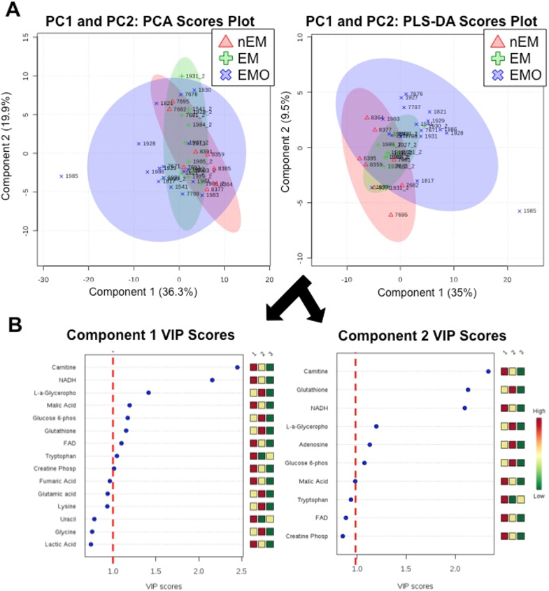 摘要:子宫内膜异位症是指子宫内膜细胞在子宫内膜以外的地方生长。在其他慢性炎症性疾病中,线粒体功能障碍被怀疑在疾病的发病机制中起作用。然而,关于子宫内膜异位症线粒体功能或其对组织代谢的影响知之甚少。本研究的目的是分析非人灵长类(NHP)子宫内膜和子宫内膜异位症组织的线粒体功能,以识别可能导致疾病的组织代谢特征。方法:用线粒体呼吸测量法测定子宫内膜异位症组织和子宫内膜的线粒体功能,与对照组的临床健康NHPs相比以确定在子宫内膜和子宫内膜异位症组织中是否存在氧化磷酸化的变化。应用靶向代谢组学和多维度统计分析对能量和氨基酸生物合成途径中的关键代谢产物进行了定量研究。结果:与正常子宫内膜相比,线粒体呼吸测定分析显示,患有子宫内膜异位症的NHPS的子宫内膜在所有能量状态(基础状态,P=0.01;状态3,P=0.02;状态3U,P=0.04;状态4O,P=0.008)都降低了复合II介导的耗氧率(OCR),子宫内膜异位组织的状态3,复合I介导的OCR(p=0.02)与呼吸控制率均降低。组织靶向代谢组学显示,与正常子宫内膜相比,子宫内膜异位症组织中的肉碱(p=0.001)、磷酸肌酸(p=0.01)、NADH(p=0.0001)、FAD(p=0.001)、色氨酸(p=0.0009)和苹果酸(p=0.005)减少与正常子宫内膜相比,非霍奇金淋巴瘤子宫内膜异位症患者的FAD(p=0.004)、色氨酸(p=0.0004)和苹果酸(p=0.03)显著降低。在子宫内膜异位症和子宫内膜异位症动物的子宫内膜样品中发现的重要代谢物是氨基酸生物合成或能量代谢途径的一部分。结论:子宫内膜和子宫内膜异位症组织线粒体能量的产生和代谢降低。线粒体能量产生减少可能是由于氧化应激引起的线粒体DNA或膜损伤,细胞代谢的改变,或能量底物减少。然而,具体原因仍不清楚还需要进一步的研究来确定线粒体能量生产和代谢减少对子宫内膜异位症和子宫内膜的影响。关键词:不孕不育 代谢 线粒体功能 非人灵长类 子宫内膜异位症背景:子宫内膜异位症是一种以氧化应激和慢性炎症为特征的慢性妇科疾病。巨噬细胞和少量淋巴细胞产生活性氧(ROS),以清除子宫内膜异位症组织和清除血红蛋白。炎症引起的红细胞渗出或周期性子宫内膜样组织脱落中的血红蛋白结合铁是子宫内膜异位症组织中ROS的另一来源。对子宫内膜异位症和其他慢性炎症性疾病(例如Crohn氏病)的研究表明,氧化应激也可能源自其他代谢来源,例如线粒体代谢缺陷。在机制上,上皮细胞癌以类似于子宫内膜异位症(即卵巢癌)的方式播撒在腹部,绝大多数支持线粒体代谢,是导致腹部癌细胞持续存在的因素,并且与非癌的、原位细胞类似物相比有显著改变。. 在现有文献中缺乏关于子宫内膜异位症或子宫内膜线粒体功能的信息,以及线粒体功能如何可能参与子宫内膜异位症相关的氧化应激。直接评估子宫内膜异位症和子宫内膜线粒体功能可能有助于深入了解细胞代谢和疾病发病机制。此外,线粒体ROS可能是降低子宫内膜异位症氧化应激的潜在治疗靶点,这表明在临床前动物模型中,线粒体ROS可以减轻疾病进展。一个生物系统的代谢组可以提供对线粒体功能或活性氧产生变化的见解。基于代谢组学的研究很少研究子宫内膜异位症的代谢改变。根据这些研究,子宫内膜异位症患者血清中参与丙酮酸代谢和氧化应激的11种代谢物水平升高。先前的研究还确定了子宫内膜异位症女性血清代谢产物的诊断模式,其预测能力大于80%,敏感性,特异性和分类率均大于90%。尽管观察到子宫内膜异位症女性血清代谢产物的模式,但这些研究并未提供有关组织代谢的大量信息,因为血清代谢产物可能无法反映组织中的浓度。因此,与临床健康对照组的子宫内膜相比,我们结合线粒体呼吸测定法和自发性子宫内膜异位症的非人类灵长类动物(NHP)模型,并使用靶向代谢组学来确定子宫内膜和子宫内膜异位组织的代谢变化。 尸检时采集的NHP组织为研究子宫内膜代谢提供了一个高度可翻译的平台。此外,NHPs提供了临床上健康的子宫内膜来源,而没有临床上健康的女性子宫内膜活检所涉及的伦理问题。 我们假设子宫内膜异位症组织由于其相对增殖性质而具有增加的线粒体呼吸作用。相反,我们假设子宫内膜会减少呼吸,这与ROS影响的其他组织相似。我们还预期子宫内膜异位症和子宫内膜中与氧化应激和丙酮酸代谢相关的代谢物的组织浓度升高,,并且这些变化将反映先前在人血清中观察到的代谢物。这项研究为更好地了解子宫内膜异位症的发病机理以及新陈代谢对子宫内膜生物学的影响提供了机会。此外,治疗子宫内膜异位症中的慢性炎症或线粒体功能障碍可能是减少系统性氧化应激的代谢生物标志物以及炎症对子宫内膜影响的一种策略。最终,减少相关的慢性炎症可以改善子宫内膜异位症女性的整体系统健康。方法:17只患有子宫内膜异位症的猕猴和8只没有子宫内膜异位症的猕猴(NHP)通过威克森林医学院灵长类中心尸检数据库(NHP总量,n=25)进行了鉴定。子宫内膜(EM)和子宫内膜异位症(EMO)组织在尸检时从NHPs中采集,作为其他研究的实验终点的一部分,并在尸检(线粒体功能研究)后立即使用,或速冻并储存在-80°C(代谢组学研究)下。子宫内膜异位症病例被分配给改良的美国生殖医学学会(ASRM)进行子宫内膜异位症严重程度分类。子宫内膜(nEM)同样是从临床健康动物中采集。与人类子宫内膜异位症的研究相似,NHPs食用了多