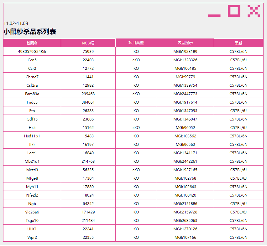 赛业生物“找小鼠 上红鼠”活体基因敲除、条件性敲除小鼠,每周指定热门基因,秒杀成功,48小时内即可发货,100%确保基因敲除。