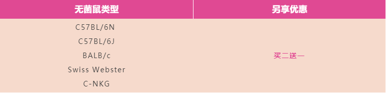 赛业生物严格执行Taconic系统规范的无菌鼠饲养繁育体系,并通过Taconic公司技术体系的审核与认证。自引进以来,三年未发生一次污染,创造了国内无菌鼠饲养繁育体系的新记录。双十一回馈,无菌鼠买二送一,让您用得省心,买得放心。
