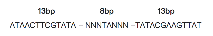 loxP(Locus Of X-over P1)是P1噬菌体基因组中34bp的特殊位点序列,包括两个13bp的反向重复序列和一个8bp的间隔区域。其中,反向重复序列是Cre重组酶的特异识别位点,而间隔区域决定了loxP位点的方向,间隔区中的“N”代表这个碱基是可变的: