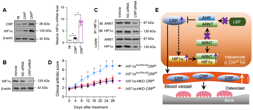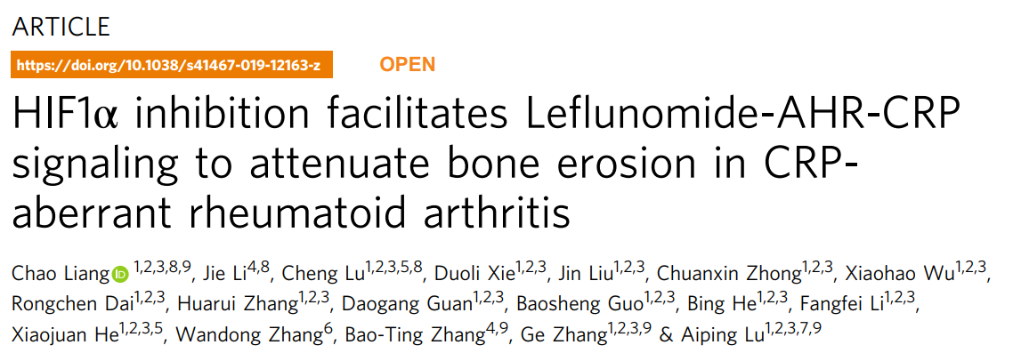 4.Liang, C.et al.HIF1alpha inhibition facilitates Leflunomide-AHR-CRP signaling to attenuate bone erosion in CRP-aberrant rheumatoid arthritis.Nature communications10, 4579, doi:10.1038/s41467-019-12163-z (2019).