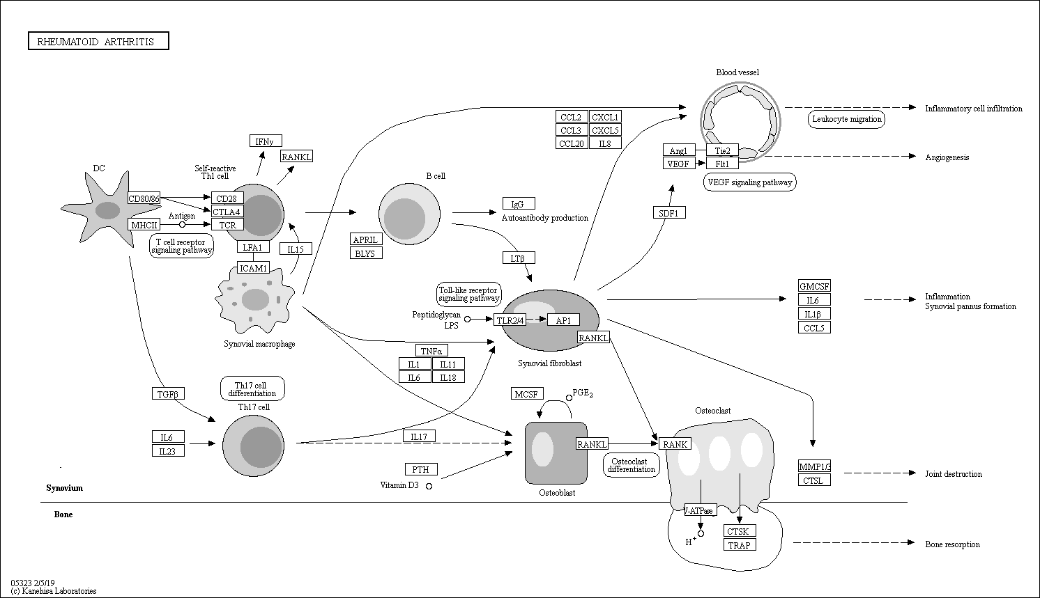 Cynthia S. Crowson,这位RA界泰斗级的女科学家,在她最新发表的流行病学调查中指出,RA的全球发病率约为0.5-1%,并且女性发病概率约是男性的两倍1。RA的风险因素包括遗传、年龄、饮食、环境、感染和性激素等,具体致病原因尚不明确2。无论如何,造成关节损伤的机制无一例外都涉及到免疫细胞和炎症因子在局灶的累积,进而促进由破骨细胞介导的骨侵蚀(Bone erosion)3。