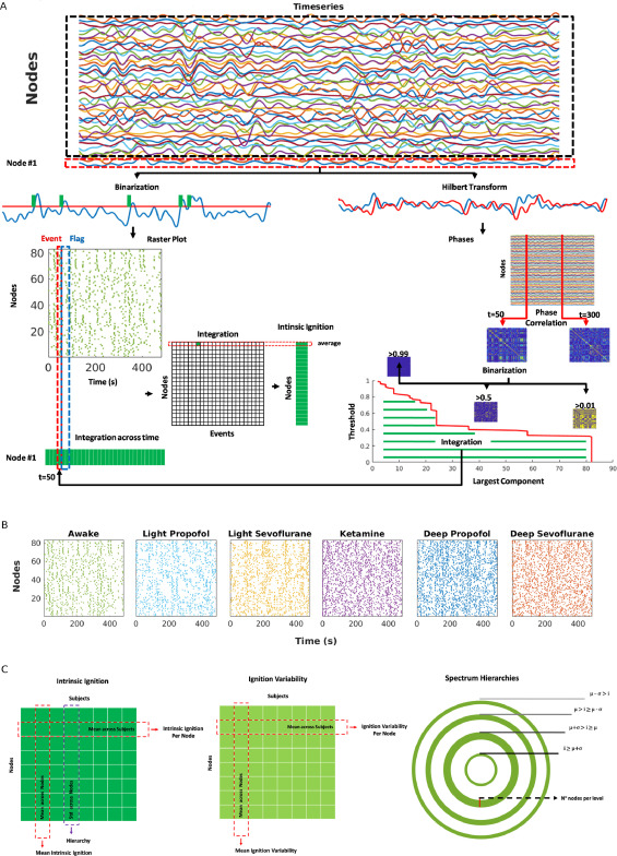 为了研究意识丧失的脑机制,一种新引入的被称为内点燃的测量方法,与全身麻醉一起,提供了一个独特的机会来量化神经活动的层次及其破坏。不同的麻醉剂,具有不同的药理学和分子途径,产生类似的动力学破坏。另一方面,“内点燃”量化了从一个区域到大脑其他区域在空间和时间上的神经传播活动。在这里,我们测量了清醒和麻醉猕猴大脑皮层区域的内点燃,并对六种实验条件(清醒、氯胺酮、轻度/深度异丙酚、轻度/深度七氟醚麻醉)进行了独特的研究。用fMRI评估的皮层区域的内点燃可揭示时空分层差异,并可以使麻醉剂聚类。最后,内点燃作为意识理论框架中的一个统一概念,根据层次组织安排量化了动态破坏,并定义了意识的多维特征。