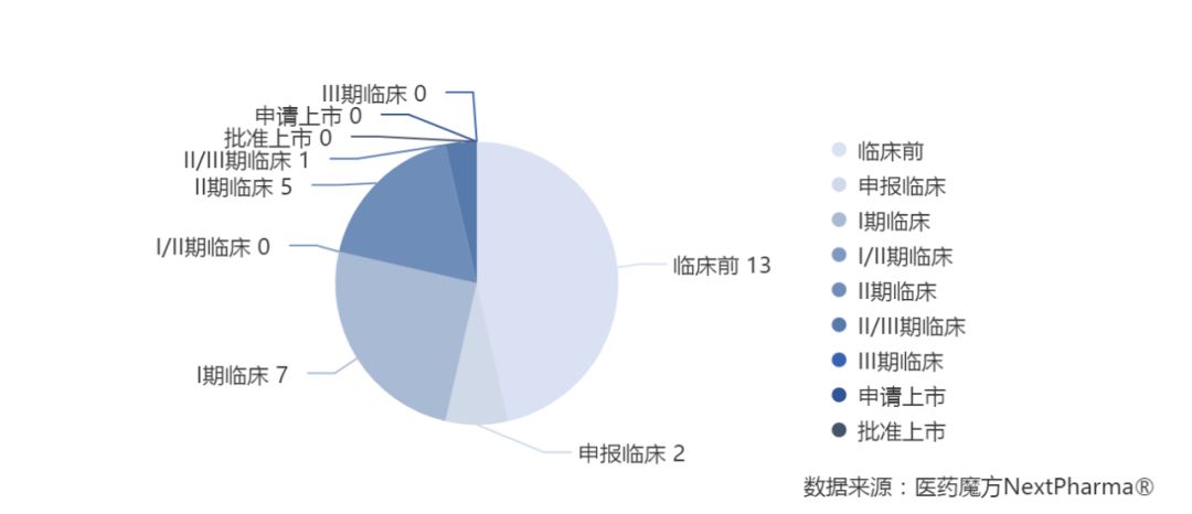目前,以LAG-3为靶点全球尚无药物上市,临床在研的药物共计28个,其中研发进展最快的是BMS和小野制药联合开发的Relatlimab处于II/III临床阶段,其共有5项临床试验,皆是与Nivolumab(Opdivo, PD-1单抗)的联合用药,综合分析可发现Relatlimab可以克服晚期黑色素瘤患者进行抗PD-(L)1治疗带来的耐药性。另外处于II期临床试验阶段的药物有5个,处于I期临床试验阶段有7个药物,处于临床前和申请临床阶段的有15个药物,以LAG-3为靶点的药物主要治疗领域包括癌症和自身免疫性疾病。