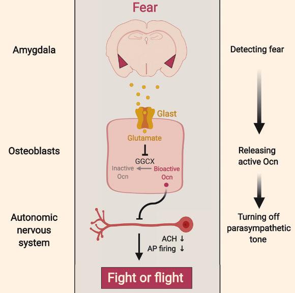 Karsenty博士及其同事基于骨骼的最初目的是对危险做出反应的假设,怀疑骨源性激素可能有助于急性应激反应。