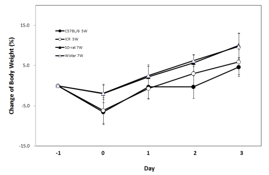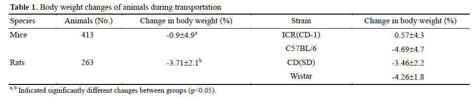 [3] Lee S H, Nam H, Kim J S, et al. Body Weight Changes of Laboratory Animals during Transportation[J]. Asian-australasian Journal of Animal Sciences, 2011, 25(2): 286-290.
