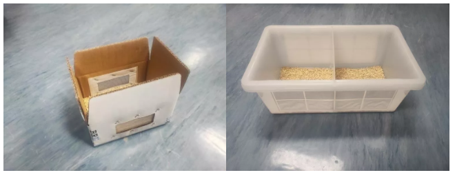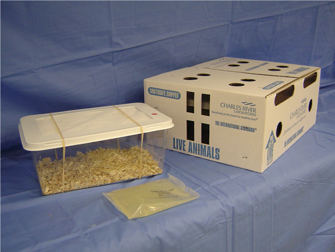 如对于一些免疫缺陷小鼠,有专门的包装箱。例如,Charles River实验室的运输盒(如下图)就是为运输免疫缺陷大小鼠模型而开发的,其设计亮点在于有两个塑料微型隔离笼,安装在特殊的打捞筒中,塑料笼顶部的过滤器在提供充足气流的同时也能避免空气中的微粒进入、对小鼠健康造成影响。