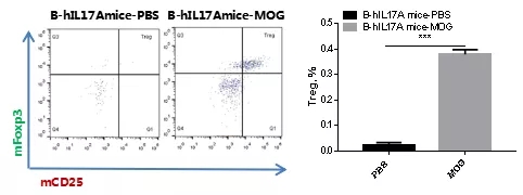 基于B-hIL17A小鼠构建的EAE模型中枢神经细胞流式检测结果显示Treg细胞显著增多。