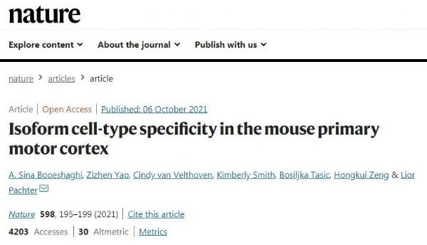 Booeshaghi, A.S., Yao, Z., van Velthoven, C. et al. Isoform cell-type specificity in the mouse primary motor cortex. Nature 598, 195–199 (2021). doi:10.1038/s41586-021-03969-3