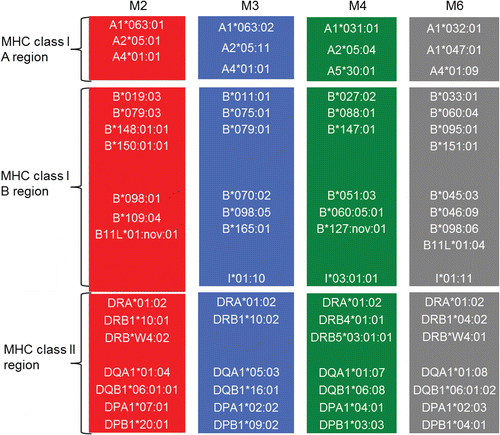 摘要:药物诱导的超敏反应可显著影响药物的开发和使用。了解药物致过敏反应的危险因素的研究已经证实与特定人类白细胞抗原(HLA)等位基因的遗传关联。有趣的是,药物诱导的超敏反应可以在非人灵长类动物中发生;然而,药物诱导的超敏反应与主要组织相容性复合体(MHC)等位基因之间的关系尚未被描述。本研究收集了62只食蟹猴临床前研究的组织样本,其中9只动物有药物引起的过敏反应的证据。微卫星分析用于确定每个动物MHC单倍型。共观察到7个单倍型和重组MHC单倍型。分布频率与食蟹猴MHC I等位基因频率相当。遗传关联分析发现MHC I B区M3单倍型的等位基因与药物诱导的超敏反应的发生显著相关。M3单倍型B区的等位基因序列与人类药敏反应相关的HLA等位基因序列相似性为86%~93%。这些数据表明,食蟹猴MHC等位基因与药物诱导的过敏反应有关,与人类HLA等位基因相似。关键词:MHC 单倍型 药物性超敏反应 食蟹猴主要组织相容性复合体(MHC)基因位点编码在免疫应答中起关键作用的蛋白质。人类MHC基因分为3类:I类和II类,它们分别编码呈现内源性和外源性肽序列的复合物,III类编码特异性免疫功能基因。MHC I类和Ⅱ类编码基因参与抗原提呈,如人类白细胞抗原(HLA)-A和HLA-B(I类)以及HLA-DR、HLA-DP和HLA-DQ(Ⅱ类)基因。这些基因具有高度多态性,并经历基因组重组以引入额外的序列变异,从而影响肽结合特异性和受体相互作用。MHC I类基因被定义为MAFA-A或MAFA-B(HLA同源物)。有趣的是,与人类MHC基因位点相比,这些动物的MHC基因经历了广泛的遗传重排和复制。结果发现,有成千上万的非人类灵长类MHC单倍型,其中食蟹猴和恒河猴在物种间共享MHC I类和II型单倍型。HLA基因中连锁遗传变异的特定组已被定义为HLA*等位基因单倍型,并与可变的免疫应答相关。HLA*等位基因还与阿巴卡韦、氟氯西林、卡马西平和别嘌呤醇等药物治疗引起的过敏反应有关。与药物有关的皮肤反应是人类最常见的药物不良反应之一。据报道,人类绝大多数药物引起的皮肤反应倾向于B型反应,并且本质上是特异的。标准的临床前毒理学测试对临床药物引起的超敏反应的预测通常较差。然而,最近有报道说,用代谢型谷氨酸受体5(mGluR5)阴性变构调节剂治疗后,毛里求斯食蟹猴出现临床皮肤病变。此外,在第二次候选药物的临床前开发中观察到相似的皮肤损伤。在62只食蟹猴中,共有9只表现出临床和组织病理学皮肤效应,这些皮肤效应与人体观察到的药物诱导的皮肤反应的特征相一致。猴的临床效果在给药5-8天之间出现,范围从全身到局限性红斑,通常涉及男性的生殖器区域(阴囊)和/或头部或四肢。局部皮肤反应在生殖器区域通常是水肿的,偶尔与大疱形成有关。对于其中一种mGluR5化合物,在给药假期之后再卤化导致皮肤效应的更快的临床发展(第3天),这与超敏反应是一致的。显微镜下,皮损的特征是真皮-表皮界面的淋巴细胞炎症(界面性皮炎),同时真皮中的血管周围淋巴细胞炎症有时与水肿有关。界面炎症伴有角质形成细胞的单细胞坏死,特别是沿基底表皮细胞层。在某些情况下,退化的角质形成细胞被淋巴细胞包围。来自生殖器区域的小泡的特征是整个表皮与真皮(表皮下大泡)完全分离。有时上表皮全层坏死。大疱中充满了含有少量炎性细胞(主要是淋巴细胞)的嗜酸性液体。给予mGluR5抑制剂的食蟹猴皮肤病变的免疫组织化学特征显示T淋巴细胞显性免疫表型。总的来说,临床效应的性质(局限于泛发性红斑或有无大泡形成)、显微镜下病变(基底皮细胞坏死的交界性皮炎)、免疫表型(T淋巴细胞显性),临床初发时间与再卤化早期发病时间与免疫介导的迟发性IV型超敏反应相一致。本研究评估了毛里求斯食蟹猴MHC单倍型与皮肤过敏反应的关系。毛里求斯食蟹猴亚种群为研究猴MHC单倍型及其与免疫应答的关系提供了独特的机会,因为毛里求斯岛上一个小型创始种群的地理隔离已将MHC I类和II类序列多样性降低到仅7个单倍型。本研究在食蟹猴的研究群体中对这些单倍型进行了表征,并确定了MHC I B区M3单倍型中的等位基因与食蟹猴药物诱导的超敏反应相关。来自辉瑞公司两个独立且不相关的项目的小分子药物候选者进行的临床前毒理学研究中,使用62只毛里求斯食蟹猴的外周血或福尔马林固定的石蜡包埋脾脏标本。总的来说,62个样本中有9个有药物性皮肤反应的临床证据(局部或全身红斑、水肿或水疱形成),53个没有观察到临床症状。基因组DNA分离与微卫星分析:根据生产厂家的说明,用QIAamp DNA FFPE组织试剂盒从FFPE组织中分离基因组DNA,用DN.Blood和组织试剂盒从外周血中分离基因组DNA,并用作微卫星分析的模板。利用每种动物的微卫星图谱推断毛里求斯食蟹猴群体中7种祖先MHC单倍型中每一种MHC I类和II类转录本。并进行序列比对。结果:MHC单倍型的识别与分布:利用微卫星分析,在62只猴中观察到7个单倍型和重组MHC I类单倍型。MHC I类单倍型频率与已发表的毛里求斯食蟹猴种群相似。MHC II类区域的单倍型也在研究种群中被鉴定,并且该分布与一般毛里求斯猴群相似,尽管程度较小。值得注意的是,M4单倍型相对富集。在本研究中分析的62只食蟹猴的MHC A、B或II类区域内没有检测到重组。在9只发生药物超敏反应的动物中鉴定出4种MHC I单倍型(M2、M3、M4和M6),表明来自这4种单倍型的等位基因更有可能参与药物超