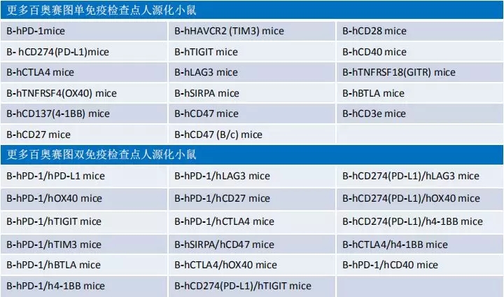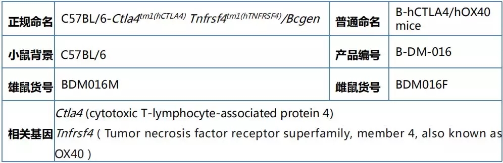 百奥赛图利用自主开发的B-hCTLA4/hOX40双人源化小鼠,为研究该靶点抗体药物的体内药效验证提供了有效的模型和有力的工具!