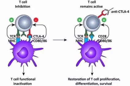 细胞毒T淋巴细胞相关抗原4(CTLA4, cytotoxic T-lymphocyte-associated protein 4),又称CD152,在T细胞的激活中起重要调节作用。CTLA4是第一个临床关注的免疫靶点,在免疫应答的负性调控方面发挥着重要作用。CTLA4抗体也是首个FDA批准用于治疗晚期黑色素瘤的抗体药物。