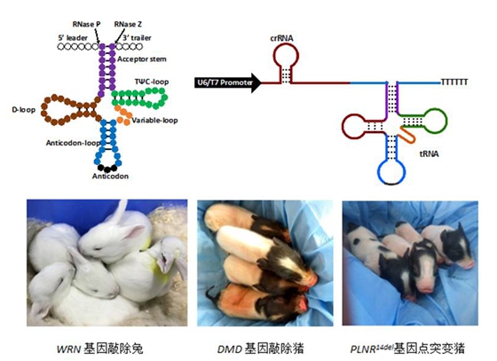 4月11日,中国科学院广州生物医药与健康研究院赖良学课题组在国际期刊Cellular and Molecular Life Sciences在线发表了新的基因编辑研究成果“Engineering CRISPR/Cpf1 with tRNA promotes genome editing capability in mammalian systems”。CRISPR/Cpf1是一种新型RNA引导的基因编辑工具,与目前广泛应用的CRISPR/Cas9相比,有更高的特异性,脱靶率更低,并且Cpf1能识别富含T碱基的间隔物相邻基序(PAM),扩大了CRISPR基因编辑系统的使用范围。但其靶向效率要低于Cas9,限制了Cpf1在基因编辑中的实际应用,目前仅在人类细胞系和小鼠胚胎中有过相关报道,还没用在大动物中实现有效的基因编辑。在本研究中,研究人员开拓性地利用哺乳动物转运RNA(tRNA)内源剪切机制,对Cpf1 引导RNA(gRNA)进行了改造,极大地提高了Cpf1在细胞系和动物胚胎中的基因编辑效率。课题组应用经改造的新型Cpf1 基因编辑系统,成功获得了首例Cpf1基因修饰家兔和猪模型。衰老是目前生命科学领域研究热点之一,目前的哺乳动物模型只有小鼠模型。通过胚胎注射,对家兔的WRN基因进行了编辑,获得世界首例家兔成年早衰模型,为衰老研究提供新的动物模型。此外,通过Cpf1介导的体细胞基因编辑与细胞核移植技术,课题组还获得了两种基因编辑猪模型,经点突变PLN基因缺失第14位精氨酸导致的扩张型心肌病猪模型以及DMD基因敲除形成的杜氏肌营养不良症猪模型,以上两种模型猪为研发相应疾病治疗的新的治疗手段,包括药物治疗、基因治疗和干细胞治疗提供了理想的大动物疾病模型。