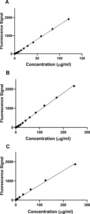 图1、荧光化合物的浓度与荧光信号的线性范围。