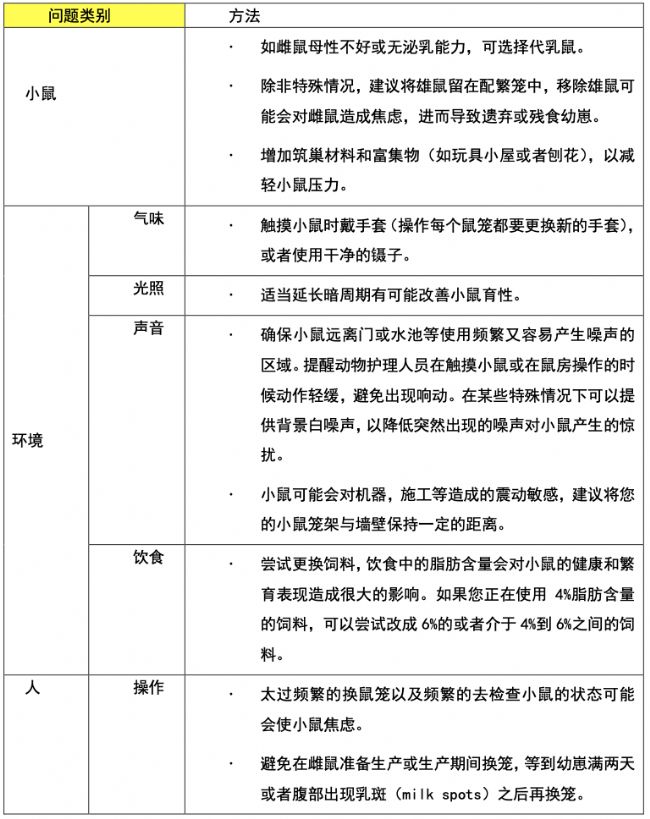 上面提到,环境因素会影响小鼠繁育。这里J博士也将来自杰克森实验室种群管理专家的一些Tips分享给大家,在遇到问题时可以从以下这些方面去思考和改善。