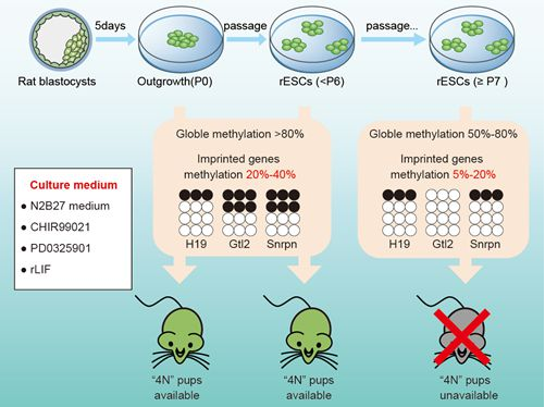 胚胎干细胞(ESCs)和诱导多能性干细胞(iPSCs)具有多潜能分化能力,能够分化形成各种类型和功能的细胞,因而在发育生物学研究和再生医学中具有重要的应用价值。通过四倍体补偿实验让 ESCs 和 iPSCs 独立发育成健康的个体,是评估细胞多能性的最严格的标准,迄今只有小鼠的 ESCs 和 iPSCs 具有这种能力,其它物种的干细胞是否具有最高等级的多能性仍然未知。近日,中国科学院动物研究所周琪研究组首次报道了除小鼠之外,大鼠胚胎干细胞也具有通过四倍体补偿实验产生健康个体的能力,证实最高等级的多能性可以在不同物种的干细胞上建立,并发现多能性维持的新规律,为研究干细胞多能性的物种进化差异和调控机制提供了新基础。10 月 23 日,相关研究结果发表在《美国国家科学院院刊》上。该研究首先建立了大鼠这一重要模式动物的四倍体补偿技术体系,为干细胞多能性的研究和评估提供了技术平台。研究人员系统评估了不同来源干细胞在不同代次的发育能力,发现“t2i”培养条件下建立的低代次大鼠 ESCs 具有很高多能性水平,通过四倍体补偿实验能够发育成健康个体,但这一能力随着细胞培养传代迅速丧失。进一步研究揭示,随着大鼠 ESCs 在体外的培养,干细胞的基因组甲基化水平迅速降低,基因组印记被擦除,导致印记丢失从而丧失了其发育能力。相比小鼠 ESCs,虽然其也会发生甲基化水平降低和印记丢失,但去甲基化速率显著慢于大鼠 ESCs。这提示干细胞多能性在不同物种的干细胞间是保守的,但其调控模式可能存在物种特异性。这为从不同物种中(包括人在内)建立具有最高多能性的干细胞提供了新思路,也为进一步了解不同物种干细胞多能性的建立和调控提供了重要理论基础。研究工作得到科技部国家重点基础研究发展计划、国家自然科学基金和中科院干细胞与再生医学研究战略性科技先导专项的支持。http://www.pnas.org/content/early/2017/10/20/1708710114.full 动物所发现大鼠干细胞多能性调控新规律