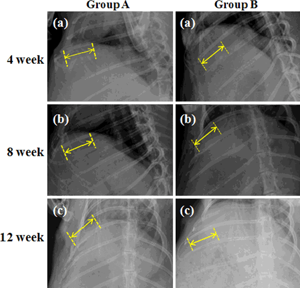 摘要:传统上认为肋骨缺损修复是不必要的,但对于术后恢复良好、生活质量较高的患者来说,肋骨重建术是至关重要的。本文报告了兔肋骨骨移植与无骨再生的比较研究。节段性缺损是在4月龄雄性新西兰兔第八肋进行。矿化胶原骨移植(MC)植入缺损,并评估长达12周。术后4, 8周、术后12周进行X线检查、术后12周进行组织学检查,观察骨重建的效果,与空白对照组比较,MC重建组骨重建活性较高,尤其是重建早期。简介:肋骨缺损在临床上较为常见,可因外伤、开胸、自体骨收获而发生。例如,口腔颌面外科医生通常使用自体肋骨修复下颌骨的缺损,神经外科医生也使用自体肋骨修复大型复杂颅骨缺损。在过去,肋骨缺损重建很少受到重视,因为它一直被认为对病人的呼吸功能没有什么影响。传统上,肋骨缺损在收获后不进行治疗,这会造成许多不良影响,如胸壁畸形、心肺功能不全等。随着外科技术的不断发展和患者美学水平的提高,肋骨缺损修复逐渐受到重视。因此,应用组织工程骨移植修复肋骨缺损的修复研究具有重要意义。迄今为止,很少有人试图重建肋骨缺损,存在完全的节段性缺损,需要生物活性骨材料。近年来,矿化胶原(MC)已成功应用于许多类型的骨修复,这是由体外仿生矿化过程制造的,具有非常相似的化学成分和微观结构的天然骨组织。MC中的胶原纤维有序排列,作为HA晶体成核和生长的模板。在许多动物模型和临床实践中,如骨融合和骨不连的治疗,在骨缺损修复和促进新骨再生方面取得了一定的效果。本研究旨在探讨MC骨材料对兔肋骨缺损再生的促进作用。在兔肋骨缺损中植入MC骨,观察到12周,为MC骨材料在兔肋骨缺损修复中的应用提供实验依据。实验部分:伦理与材料:所有手术均在全身麻醉下进行,尽一切努力减轻兔子的痛苦。8只新西兰兔(5月龄,体重3.0-3.5kg)肋骨缺损模型:兔每笼一只,温度(15-21°C),12-12明暗循环,兔自由采食和饮水。将兔随机分为空白对照组和MC组。所有手术均用10%(V/V)氧水合氯醛进行全身麻醉。对麻醉深度的评估是通过脚趾捏反射消失判定。麻醉后,家兔横向位置固定。右侧腹上的手术部位被剃光,用无菌单分离,用外科手术消毒,用酒精、碘伏消毒,覆盖无菌巾。右腹部做皮肤切开,然后切开皮下筋膜和肌肉。肋骨暴露后,切口在右侧,平行于肋骨方向。骨科肋骨剪用于去除肋骨的一部分,骨膜在外侧缘和底部被保留。肋骨骨折的边缘磨平滑使用锉刀满足设计尺寸。MC植入缺陷区,并检查其位置。对照组不植入任何材料。肋骨头碎片,凝血痂,和肋骨骨髓组织进行50ml生理盐水冲洗。止血和伤口生理盐水冲洗后,皮下筋膜、肌肉和皮肤切口缝合用可吸收手术缝合线4/0缝合由两层后,酒精和碘酒消毒。手术后,实验兔每天注射青霉素肌注,连续3天。兔子单独饲养。兔可以自由获取食物和水,并在术后的任何时间对任何并发症或异常行为进行监测。X线平片分析:分别在4, 8周和12周后侧普通X线投影操作检查兔子的肋骨。氯胺酮(40mg/kg)肌肉注射麻醉家兔。将摄影胶片放在右腹部。组织学检查:术后12周处死动物手术。骨缺损部位的标本固定于10%中性福尔马林48h. 然后10%多聚甲醛固定和5%乙二胺四乙酸(EDTA)脱钙。脱钙后,样品通过切片机沿纵向平面切割,然后嵌入石蜡。切片并进行HE染色。然后用光镜观察。结果:死亡率和临床体征:所有动物术后快速恢复,并恢复日常活动如饮食、饮水。未发现明显的感染迹象,如红、热切口或渗出物。未观察到与其他临床对象相关的临床体征。X线平片分析:MC组X线片显示3cm的缺损处覆盖有均匀不透明物质。可以清楚地看到,在术后4周,大量新骨形成,缺损几乎完全修复。此外,术后8周和12周发生骨重建。在手术后12周,肋骨缺损新形成的愈伤组织,断端被骨桥连接。术后4周,一些新骨形成明显的透亮,提示对照组新骨形成率较MC组慢。术后4周仍能观察到间隙。组织学检查:目前的组织学结果显示,相对成熟的骨小梁骨排列整齐,MC组术后12周,骨小梁周围可见血管生长细胞。骨单位已经形成,新形成的骨腔和骨髓腔发育良好。对照组骨小梁较少。这些结果表明MC具有促进新骨形成的能力。MC能为植入新骨侵袭和刺激新骨沉积提供一个良好的生物环境。它不仅可以作为促进组织再生的空洞填充物,而且可以作为愈合过程的加速器。随着新的骨侵袭,MC骨材料逐渐降解,被新生骨组织分离成若干个小岛屿。蓝色染色显示新骨形成的胶原,红段显示成熟骨胶原。植入后,周围的骨组织沿着多孔的MC支架生长。可以归因于MC是矿化的胶原纤维,在细胞水平上表现出令人满意的生物相容性,通常在植入周围的纤维囊的形成中占主导地位。讨论:首先,肋骨具有可变弧度,因此单一的移植物可能不适合肋骨重建,因为移植物必须容易成型。本研究采用MC重建肋骨缺损。本研究首次报道了这一方法。我们成功地用MC重建了一个长肋骨缺损。本研究发现,MC修复组的骨改建活性高于无MC组,尤其在重建早期,这表明肋骨缺损重建是重要且必要的。肋骨不是承重骨,但可以通过呼吸移动。肋骨重建虽然取得了良好的效果,但仍需进一步研究。然而,仍然存在一些问题,如移植物的机械完整性。因胸部肌肉的作用,移植物仍然受到变形力,特别是当动物发出声音。我们认为这种技术可能是肋骨修复的一种可行的方法。结论:结果表明,与正常对照组相比,