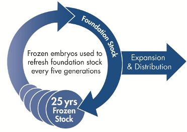 ▲ 在种群扩繁早期,大量冷冻保存胚胎、精子,并定期复苏以更新繁育对。