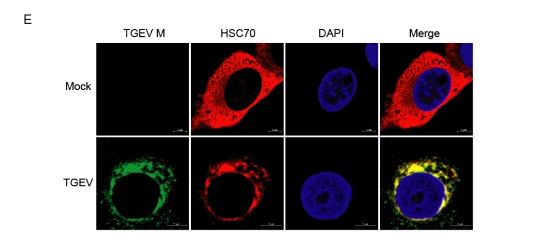 TGEV属于α-冠状病毒,在已有的报道中,TGEV通过其纤突蛋白与受体氨基肽酶N相互结合入侵宿主细胞。目前针对冠状病毒膜蛋白(M)功能的研究主要集中在病毒粒子的组装和出芽阶段,然而M蛋白在病毒复制的其它阶段是否具有功能尚不清楚。