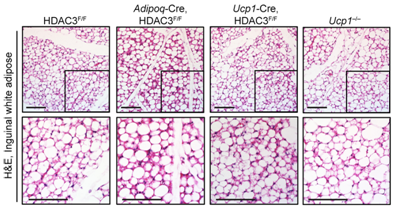 图片来自Nature, doi:10.1038/nature22819。当我们沐浴在署夏的阳光中时,很容易想当然地以为人类也准备好应付冬季的寒冷,如穿起衣柜中的大衣,此外开启家庭暖气系统可进一步抵抗温度下降。并不是所有的温血动物都是如此幸运的。比如,当遭遇低温时,小鼠依赖它们的肩胛骨之间的一种特定的器官来产生热量。这种器官是由被称作棕色脂肪细胞的特定脂肪细胞组成的。在一项新的研究中,来自美国宾夕法尼亚大学佩雷尔曼医学院的研究人员详细地描绘了让这些棕色脂肪细胞释放热量所必需的一种分子,即组蛋白去乙酰化酶3(HDAC3)。相关研究结果于2017年6月14日在线发表在Nature期刊上,论文标题为“Histone deacetylase 3 prepares brown adipose tissue for acute thermogenic challenge”。在体内,棕色脂肪细胞燃烧糖和脂肪产生热量。人们已将其注意力放在这些细胞上,这是因为它们燃烧的一些糖和脂肪是被储存在身体中的,而且可能导致白色脂肪增加,从而增加肥胖产生的风险。在小鼠体内,这种棕色脂肪组织依赖于一种被称作解偶联蛋白1(UCP1)的分子。该分子像一种加热元件那样发挥作用。缺乏UCP1基因的小鼠即便短期暴露在接近零度的温度下也不能够存活下来。论文通信作者、宾夕法尼亚大学佩雷尔曼医学院糖尿病、肥胖与代谢研究所主任Mitchell Lazar博士、他的实验室的博士生Matthew Emmett(也是论文共同第一作者)和他们的同事们发现棕色脂肪细胞缺乏HDAC3的小鼠不能够启动UCP1基因,因而就与缺乏UCP1基因的小鼠那样对寒冷的有害影响同样地敏感。这项研究证实HDAC3是启动这种棕色脂肪细胞释放热量所必需的,即便当UCP1基因保持完整时,也是如此。HDAC3在宿主细胞的表观基因组上发挥着功能。Lazar团队分析并整合了大量的DNA序列数据集,从而有助发现HDAC3启动这些棕色脂肪细胞释放能量的机制。这项研究的生物信息学分析部分是论文共同第一作者Hee-Woong Lim博士和研究助理教授Kyoungjae Won博士完成的。五年前的研究已证实成年人也拥有棕色脂肪组织。尽管并未确定它是否像啮齿类动物那样位于肩胛骨之间,但是它也被低温激活,释放热量,不过这并不足以取代外套和取暖器。成年人中的棕色脂肪分布得更加广泛:棕色脂肪细胞分布于颈动脉、乳动脉、心脏和肺部等体腔区以及胰腺、肾脏和脾脏等其他的实体器官中。皮下棕色脂肪堆积也能够在颈肌、锁骨和腹壁附近发现到。这些研究也已证实肥胖的人比苗条的人拥有更少的棕色脂肪。鉴于棕色脂肪细胞在体内燃烧糖和脂肪,通过增加这种燃烧来提高体内代谢从而实现体重减少和糖尿病控制可能是可行的。然而,令人吃惊的是,棕色脂肪细胞中缺乏HDAC3的小鼠并不会变胖。不论存在何种关联性,这项新的研究提示着确保棕色脂肪细胞及其含有的HDAC3保持在良好的工作状态是至关重要的。 Nature:蛋白HDAC3是哺乳动物棕色脂肪组织释放热量所必需的