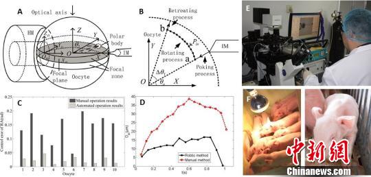“机器人操作体细胞克隆猪”研究来自南开大学机器人所赵新教授领导的跨学科研究团队,天津市畜牧兽医研究所是主要合作单位。体细胞克隆是改良生物品种的经典方法之一。它将普通品种卵母细胞的细胞核去除后,注入优良品种的体细胞。这种方法的优势在于获得的后代一定是优良品种。然而,人工操作成功率极低。针对这一问题,南开大学研究团队研制出具有可视化、微创化、定点化、定量化功能,集检测分析与操作于一体的原位显微分析与操作仪,利用该仪器实现了机器人化的细胞核移植流程。