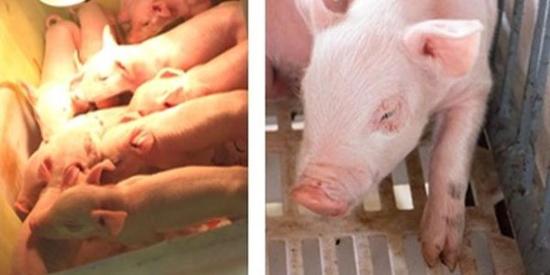 经过110天孕育,4月26日、29日,两头普通的“代孕”母猪先后顺利产下了13头健康的纯种小长白猪。