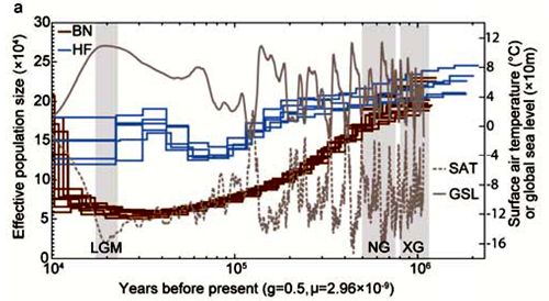 针对我国遗传多样性丰富的褐家鼠资源,研究人员进一步利用比较基因组学,对我国多个褐家鼠种群及其姊妹种大足鼠的群体进行了全基因组测序和比较,发现广布性褐家鼠的核苷酸多样性反而比狭布性大足鼠的低,褐家鼠的有效种群大小随历史波动比较大,在末次冰期存在一个遗传瓶颈,两个姊妹种的分化时间与东亚发生的最大一次冰川的时间是吻合的,据此推断剧烈的气候变化影响了褐家鼠的物种形成。