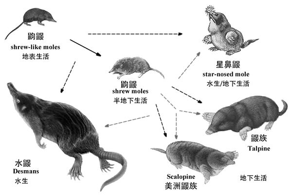 图1 鼹类的适应性演化