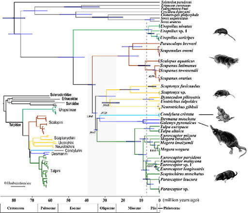 本研究解决了鼹科几个长久争论的重要问题:首次发现鼩鼹类的是一个单系群;首次强有力的证明了中国特有物种甘肃鼹是美洲鼹族中的一员;支持以美洲鼹为代表的美洲鼹族(Scalopini)和以欧洲鼹为代表的鼹族(Talpini)对地下生活的适应是独立起源的。此外,该研究发现鼹科至少包括12个未知物种,其中有11种生活在中国西南及周边区域;而针尾鼹属(Scaptonyx)的进化历史惊人的漫长,其中可能包含未知的属(图2)。