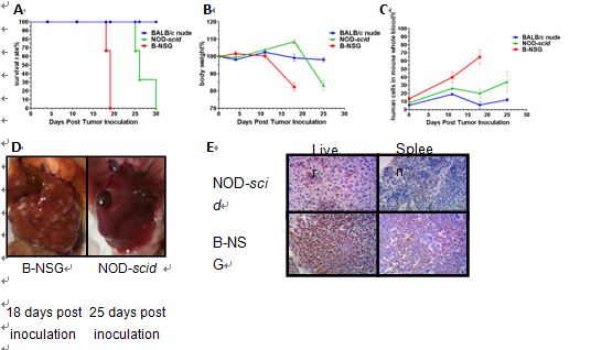 重度免疫缺陷的B-NSG鼠比其他免疫缺陷鼠适于PDX模型建立
