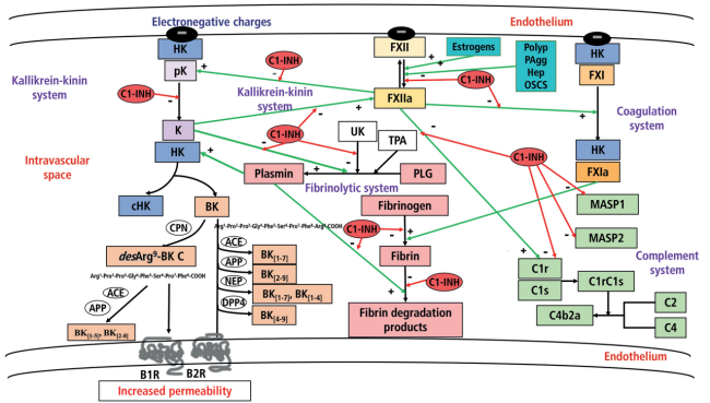 C1-INH(SERPING1)缺乏导致遗传性血管性水肿(HAE)发生的病理生理学途径[9]