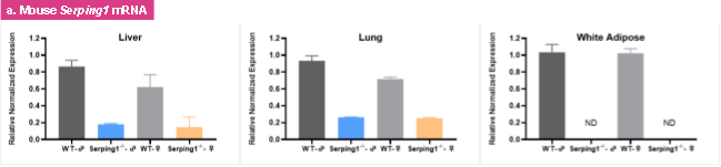 RT-qPCR检测结果显示,Serping1 KO小鼠几乎没有Serping1转录本的表达,只检测到少量尚未降解的无义RNA,这些RNA不能编码全长功能性C1-INH蛋白。