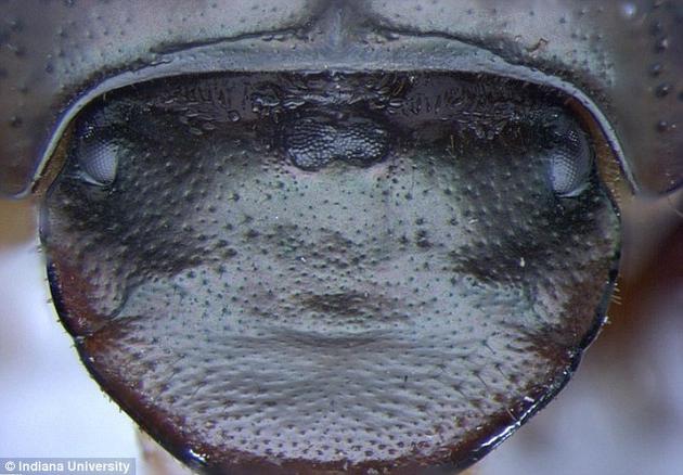 来自美国印第安纳大学布鲁明顿文理学院生物学系的研究者尝试关闭了蜣螂的orthodenticle基因——与头部发育有关——发现蜣螂的头部结构出现了剧烈的变化,包括角的缺失,以及头顶长出单个复眼。