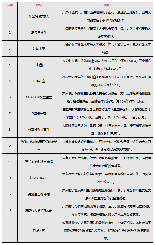 免疫缺陷大鼠在肿瘤&免疫研究中的优势总结