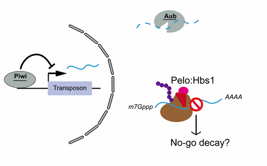 2015年6月29日,袭荣文实验室在EMBO report杂志上在线发表题为“The RNA surveillance complex Pelo-Hbs1 is required for transposon silencing in the Drosophila germline”的研究论文。 转座子是基因组中散在分布的可以移动的DNA序列。生殖腺中活跃的转座子可以造成可遗传的突变和基因组的不稳定,所以转座子的沉默对维持代际间基因组的完整性有重要意义。已知Piwi家族蛋白和与之相关的pirnas在转座子沉默中发挥主导作用,它们同时通过转录水平的抑制作用和转录后mRNA的识别和剪切作用实现转座子的沉默。在这项研究中,研究人员发现蛋白质翻译过程中的Pelo-Hbs1复合物参与了果蝇生殖系中转座子的沉默,因此提出了在翻译水平上调控转座子的沉默的证据。