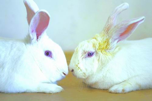 近日,云南省中心眼库的科研人员用兔子做人工眼角膜移植实验。图左为正常的兔子,眼睛是红色的,右图为做过人工眼角膜手术的兔子。 今年是云南省中心眼库建立21周年,眼角膜库存匮乏的情况越来越严重,近一年更是处于“有库无眼”的状态。人工眼角膜如能成功用于临床,或能改变这一现状。据介绍,如果进展顺利,今年下半年或明年年初,他们将开始在志愿者身上进行下一步研究。 兔子用上人工眼角膜